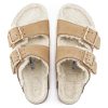 L’Arizona, modèle BIRKENSTOCK classique au design intemporel, comble hommes et femmes depuis des décennies. La présente variante affiche une allure à la fois moderne et urbaine. La fourrure d’agneau frisée est mise en valeur et s’agrémente d’une boucle en laiton. La semelle garantit, de plus, un port confortable et sûr grâce à deux éléments : une semelle intermédiaire amortissante en EVA et une semelle d’usure en caoutchouc véritable qui complète le look. Elle se compose d’une tige en cuir nubuck doux haut de gamme.