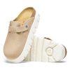 Grand classique BIRKENSTOCK, le sabot Boston se porte en toute saison. Papillio pare ici le sabot d’une semelle compensée tendance aux lignes très profilées. Le bout biseauté assure un confort maximal durant la marche. Sa tige a été confectionnée dans un cuir velours particulièrement doux qui drape le pied comme une seconde peau.