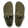 L’originalité avant tout ! Le sabot Boston, un classique parmi les modèles BIRKENSTOCK, se présente ici dans une version particulièrement douillette en véritable cuir velours de qualité supérieure. La semelle de propreté en fourrure d’agneau naturelle et les brides doublées de fourrure d’agneau lui donnent du style et gardent vos pieds bien au chaud. La chaussure idéale pour les soirées d’hiver au coin du feu !
