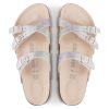 Munie de fines brides croisées, la sandale Franca de BIRKENSTOCK est une chaussure au design dynamique. Alliant habilement confort et esthétisme, elle apporte aux femmes à la pointe des tendances commodité et élégance au quotidien. Son matériau a été revu ; ce modèle est dorénavant disponible en version vegan. Il est désormais exempt de tout constituant d’origine animale, conformément aux tests effectués par des laboratoires de contrôle indépendants. Cette version affiche une brillance irisée et étincelante aux couleurs de l’arc-en-ciel. Pour la petite pointe de raffinement en plus, les détails sont de couleur assortie. Sa tige a été confectionnée dans une matière en microfibre agréable sur la peau.