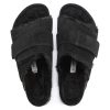 La Kyoto de BIRKENSTOCK s’inspire en toute décontraction du grand classique Zürich, et séduit par son design épuré et compact doté d’une boucle réglable. Celle-ci garantit un maintien optimal et est complétée par deux rivets décoratifs. Cette version est particulièrement douillette avec une semelle de propreté et une doublure en fourrure d’agneau. Sa tige a été confectionnée dans un cuir velours particulièrement doux qui drape le pied comme une seconde peau.