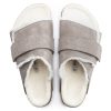 La Kyoto de BIRKENSTOCK s’inspire en toute décontraction du grand classique Zürich, et séduit par son design épuré et compact doté d’une boucle réglable. Celle-ci garantit un maintien optimal et est complétée par deux rivets décoratifs. Cette version est particulièrement douillette avec une semelle de propreté et une doublure en fourrure d’agneau. Sa tige a été confectionnée dans un cuir velours particulièrement doux qui drape le pied comme une seconde peau.