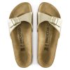 En tant qu’aîné de la famille, le modèle Madrid de BIRKENSTOCK est un grand classique de la marque. Lancée sur le marché il y a une cinquantaine d’années, cette « sandale de gymnastique » à bride unique épurée s’est depuis imposée comme une véritable alliée mode. La présente variante arbore une brillance métallisée. Sa tige est confectionnée en Birko-Flor®, un matériau synthétique doux et résistant.