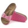 Aîné de la famille, Madrid de BIRKENSTOCK est un modèle emblématique de la marque. Lancée sur le marché il y a une cinquantaine d’années, cette « sandale de gymnastique » à bride unique épurée s’est depuis imposée comme une véritable alliée mode. Pour la petite pointe de raffinement en plus, les détails sont de couleur assortie. Sa tige a été confectionnée en Birko-Flor®, matériau synthétique doux et résistant, rehaussé d’un revêtement verni brillant.