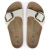 Le modèle Madrid, un des grands classiques BIRKENSTOCK, affiche un design épuré qui, dans l’univers de la mode, ne laisse personne indifférent. Cette version arbore notre très appréciée Big Buckle. Son matériau a été revu ; ce modèle est dorénavant disponible en version végane. Il est désormais exempt de tout constituant d’origine animale, conformément aux tests effectués par des laboratoires de contrôle indépendants. Ses boucles imprimées lui donnent une allure originale. Sa tige a été confectionnée dans un textile doux et souple.