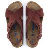 La Tulum de BIRKENSTOCK : une sandale à l’allure sport. Les brides croisées et la bride de talon donnent à cette sandale son look unique et original. Les boucles de couleur assortie au toucher textile d’aspect mat ainsi que la semelle d’usure de couleur assortie lui donnent une petite touche originale en plus. Le lit de pied souple est équipé d’une semelle complémentaire en mousse qui chouchoute le pied, pour un confort accru tout au long de la journée. Sa tige se compose de cuir velours doux.
