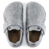 Fonctionnalité et cocooning réunis ! La Zermatt HL est la première pantoufle BIRKENSTOCK munie d’un lit de pied amovible. Elle est ainsi compatible avec trois modèles de semelles. La version présentée est équipée de notre lit de pied Standard. Sa fermeture à scratch pratique évite tout stress matinal. Elle offre en outre un excellent maintien des chaussures, même en cas d’activité intense. Cette pantoufle se compose d’une tige souple en feutre de laine.