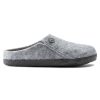 La Zermatt est la première pantoufle BIRKENSTOCK munie d’un lit de pied amovible. Elle est ainsi compatible avec trois modèles de semelles : le lit de pied Standard, le lit de pied Soft et le lit de pied Shearling. Les trois modèles sont disponibles à l’unité. En résumé, la chaussure idéale pour toute l’année ! La version présentée est équipée de notre lit de pied Standard. Inspiré des empreintes de pas naturelles laissées dans le sable, il est un gage de confort tout au long de la journée. Cette pantoufle se compose d’une tige souple en feutre de laine.