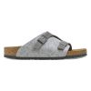 Le modèle Zürich de BIRKENSTOCK allie la stabilité d’une chaussure fermée à la légèreté d’une sandale et fait l’unanimité aussi bien auprès des hommes que des femmes. Sa forme fermée sur les côtés mais ouverte au talon et à l’avant laisse les pieds bien aérés. Cette version présente un mélange authentique et rustique de matières en feutre synthétique doux et en cuir naturel épais.